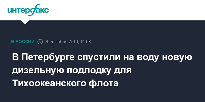 В Петербурге спустили на воду новую дизельную подлодку для Тихоокеанского флота