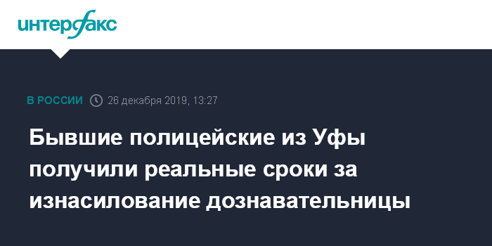 Москва. 26 декабря. INTERFAX.RU - Кировский суд Уфы признал трех бывших полицейских виновными в изнасиловании дознавательницы в отделе полиции в октябре 2018 года. Все они получили реальные сроки лишения свободы.
