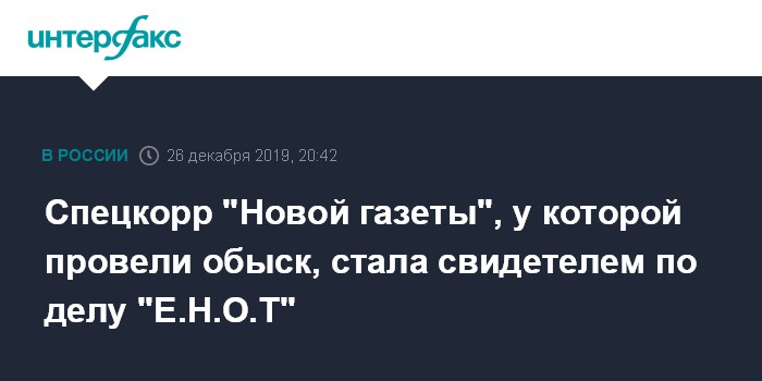 Спецкорр "Новой газеты", у которой провели обыск, стала свидетелем по делу "Е.Н.О.Т"