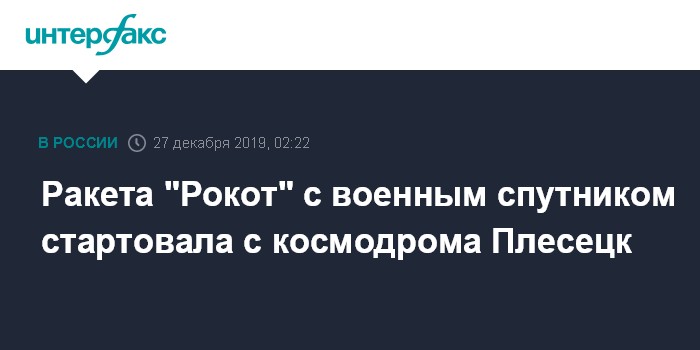 "В пятницу, 27 декабря, в 02:11 мск с пусковой установки № 3 площадки № 133 космодрома Плесецк в Архангельской области боевым расчетом Космических войск ВКС осуществлен пуск ракеты-носителя легкого класса "Рокот" с блоком космических аппаратов связи "Гонец-М" и космическим аппаратом в интересах Минобороны России", - сказали в военном ведомстве.