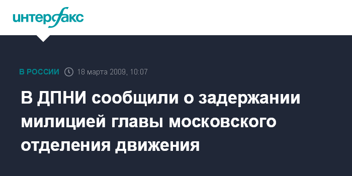 В ДПНИ сообщили о задержании милицией главы московского отделения движения