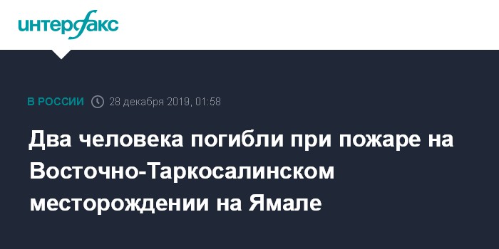 Два человека погибли при пожаре на Восточно-Таркосалинском месторождении на Ямале