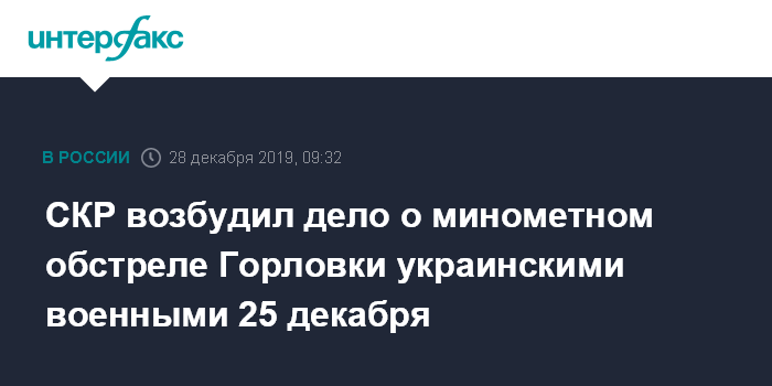 СКР возбудил дело о минометном обстреле Горловки украинскими военными 25 декабря