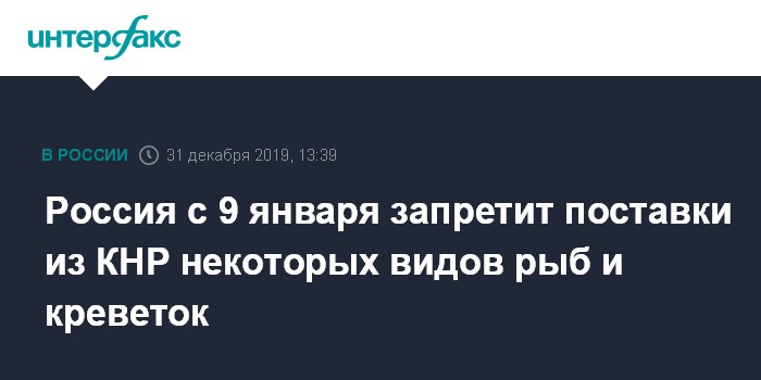 Россия с 9 января запретит поставки из КНР некоторых видов рыб и креветок