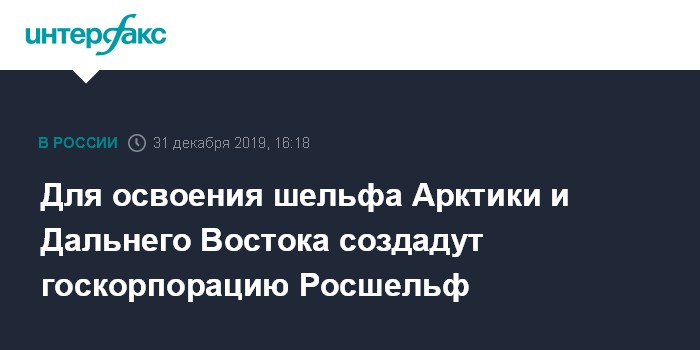 Москва. 31 декабря. INTERFAX.RU - Подготовлен законопроект о создании госкорпорации по освоению континентального шельфа РФ в Арктике и на Дальнем Востоке - "Росшельф", он размещен на федеральном портале проектов нормативных правовых актов.