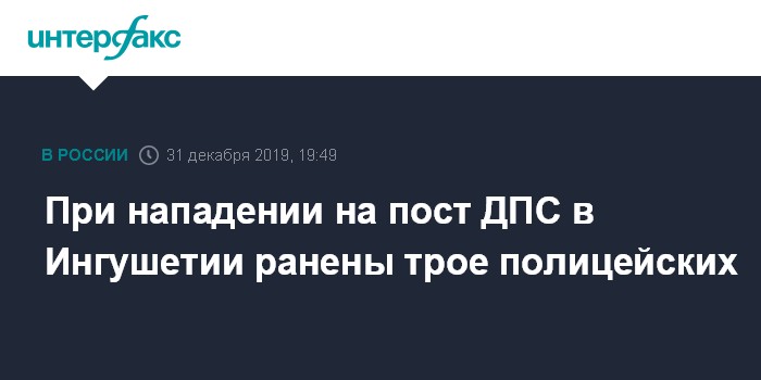 Москва. 31 декабря. INTERFAX.RU - Трое сотрудников полиции получили ранения в результате нападения на пост в Магасе (Ингушетия), сообщил "Интерфаксу" сотрудник пресс-службы регионального МВД.
