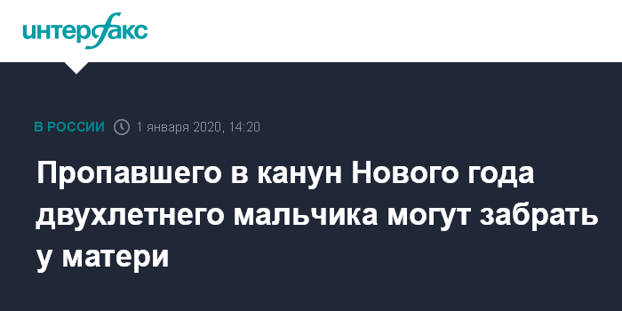 Москва. 1 января. INTERFAX.RU - В Благовещенске 31 декабря пропал двухлетний мальчик. 1 января Следственный комитет сообщил, что ребенка нашли и он жив. Следователи потребуют отобрать мальчика у матери до выяснения всех обстоятельств.