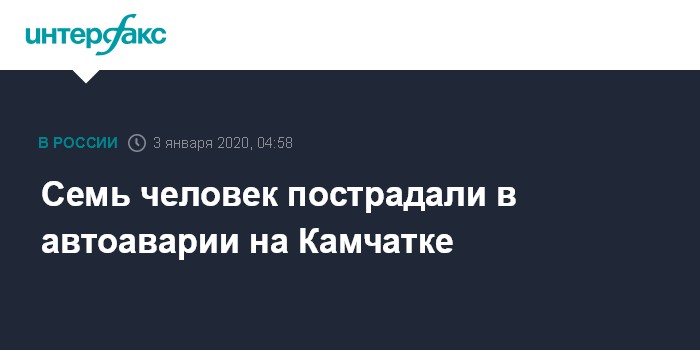 Москва. 3 января. INTERFAX.RU - На Камчатке семь человек, в том числе трое детей пострадали в дорожно-транспортном происшествии (ДТП), сообщили агентству "Интерфакс - Дальний Восток" в Елизовском отделении ГИБДД УМВД России по Камчатскому краю.