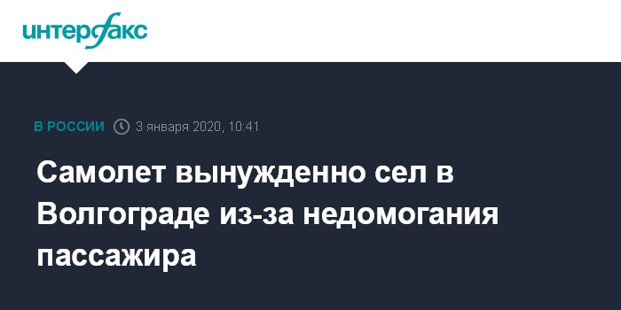 Москва. 3 января. INTERFAX.RU - Самолет "Аэрофлота", следовавший по маршруту Баку - Москва, утром в пятницу совершил вынужденную посадку в аэропорту Волгограда.