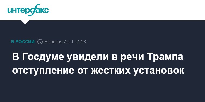 "Сейчас в речи Трампа мы видим практически по всем позициям откат в политическую плоскость, что безусловно, очень положительно", - сказал Слуцкий в среду вечером "Интерфаксу". "Хотелось бы высказать здоровый пессимизм в отношении того, что вдруг Трамп одумался, что произошло нечто чудесное", - отметил парламентарий.