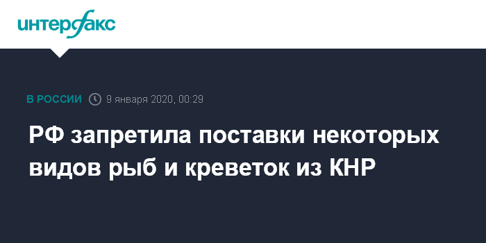 РФ запретила поставки некоторых видов рыб и креветок из КНР
