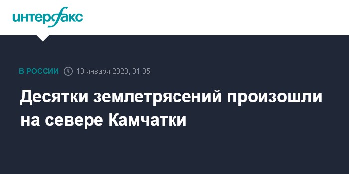 Москва. 10 января. INTERFAX.RU - Сейсмологи с вечера четверга, 9 января, зарегистрировали десятки землетрясений, продолжающихся на севере Камчатки, сообщили агентству "Интерфакс" в Камчатском филиале Единой Геофизической службы РАН.