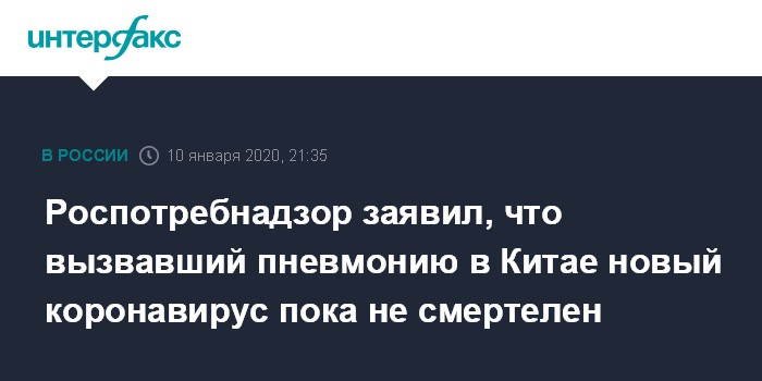 "Отсутствие на настоящий момент летальных исходов и относительно низкий процент (около 10%) тяжелых случаев заболевания может свидетельствовать о более низкой опасности для человека нового вируса по сравнению с коронавирусом, вызвавшим в 2003 году вспышку так называемой атипичной пневмонии (летальность - около 10%) и коронавирусом, вызывающим Ближневосточный респираторный синдром (летальность - около 35%)", - сообщили в ведомстве, отвечая на запрос агентства.