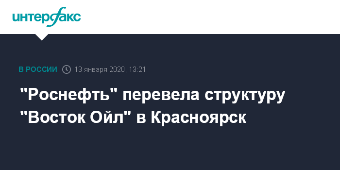 "Роснефть" перевела структуру "Восток Ойл" в Красноярск