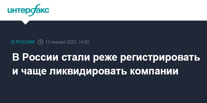Москва. 13 января. INTERFAX.RU - В 2019 году в России внесли в госреестр 283 900 новых коммерческих компаний, что на 11,3% меньше, чем годом ранее, следует из данных Федеральной налоговой службы. Количество ликвидированных организаций выросло с 2018 года на 0,7%, до 74 400.