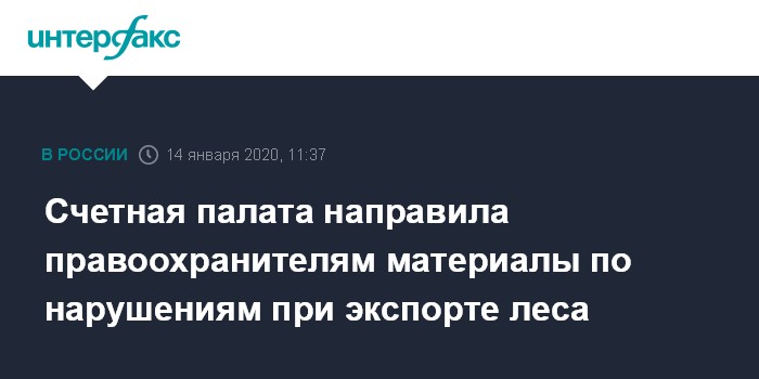 Москва. 14 января. INTERFAX.RU - Счетная палата (СП) РФ обнаружила нарушения в процессе заготовки и экспорта сырого леса (кругляка) и направила информацию об этом в правоохранительные органы. Об этом сообщил глава ведомства Алексей Кудрин на встрече с президентом РФ Владимиром Путиным.
