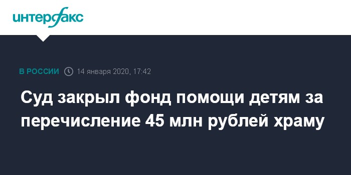 Суд закрыл фонд помощи детям за перечисление 45 млн рублей храму