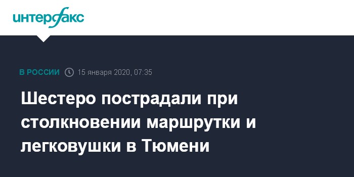Москва. 15 января. INTERFAX.RU - Шесть человек пострадали в аварии с маршруткой в Тюмени, сообщил "Интерфаксу" информированный источник.