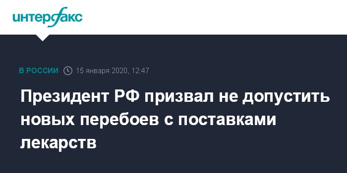 Москва. 15 января. INTERFAX.RU - Президент РФ Владимир Путин потребовал в текущем году не допустить повторения прошлогодней ситуации с перебоями в поставках лекарств в регионах.