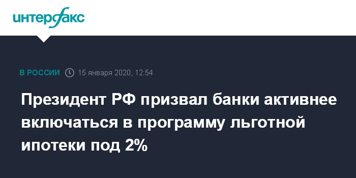 "На Дальнем Востоке запущена социальная программа для молодых семей - ипотека по ставке 2%. Прошу банки, и не только с госучастием, активнее включаться в ее реализацию", - сказал Путин, оглашая Послание Федеральному Собранию.