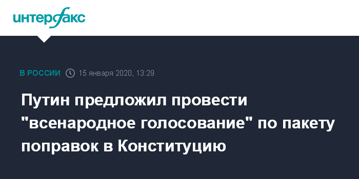 Путин предложил провести "всенародное голосование" по пакету поправок в Конституцию