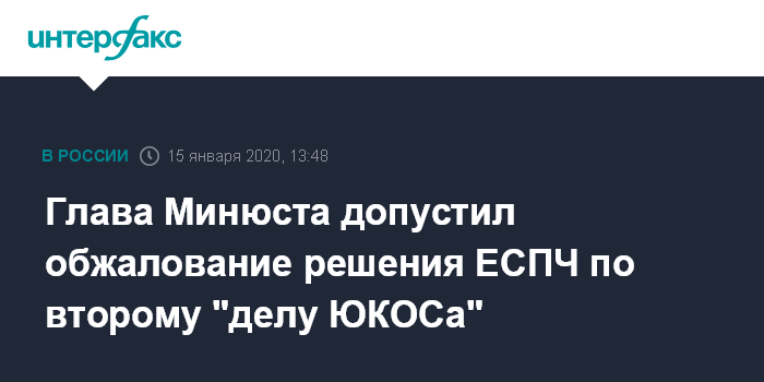 Глава Минюста допустил обжалование решения ЕСПЧ по второму "делу ЮКОСа"