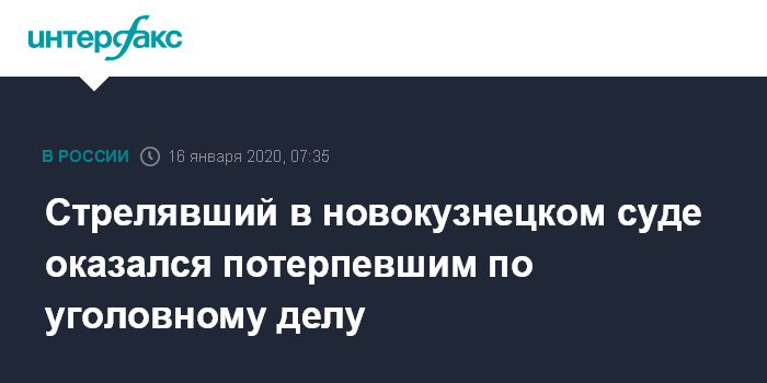 Москва. 16 января. INTERFAX.RU - Мужчина, застреливший пристава и ранивший посетительницу мирового суда в Новокузнецке, проходил потерпевшим по уголовному делу, сообщил агентству "Интерфакс" осведомленный источник.