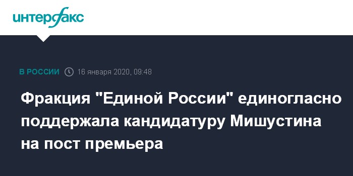 Ранее о поддержке, высказанной единороссами Мишустину, сообщил "Интерфаксу" источник.