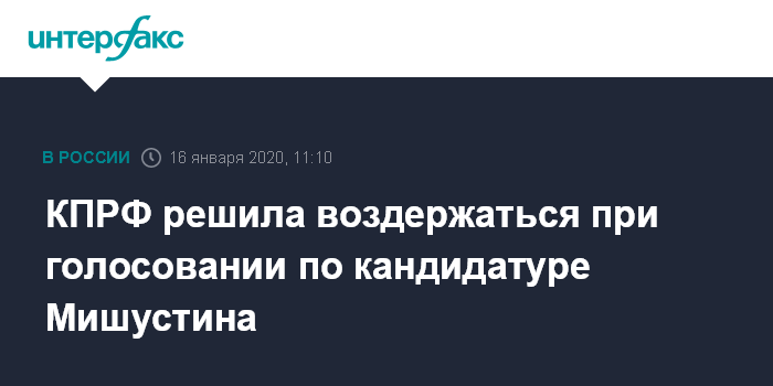 "Наша фракция, обсудив ситуацию, приняла решение, учитывая... наши требования отставки правительства и изменения Конституции в пользу повышения контроля над исполнительной властью законодателей, мы при голосовании воздержимся голосовать "за" и "против", но посмотрим в ближайшее время, какую программу и какой состав команды предложит Мишустин и президент", - сказал Зюганов.