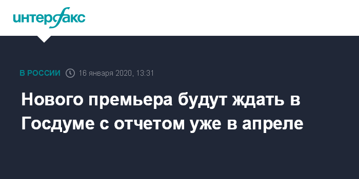 "Уже где-то, наверное, в середине апреля в рамках отчета правительства (новому премьеру - ИФ) придется вновь прийти в Государственную думу и выступить перед депутатами с отчетом", - сказал Володин журналистам в четверг.