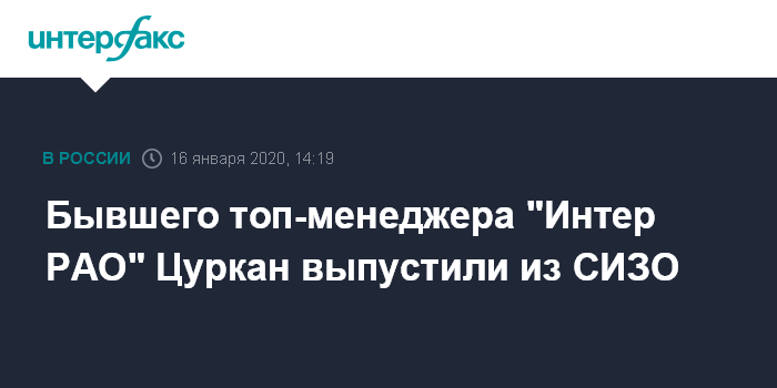 Бывшего топ-менеджера "Интер РАО" Цуркан выпустили из СИЗО