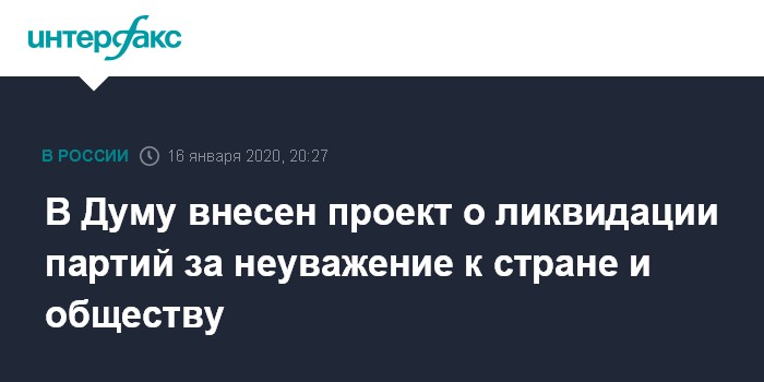 Парламентарии предлагают расширить действующие нормы части 2 статьи 8 закона о политических партиях. Согласно проекту закона, "деятельность политических партий не должна нарушать права и свободы человека и гражданина, гарантированные Конституцией РФ, а также умалять авторитет государства и государственных символов и институтов на международной арене (явное неуважение к обществу, государству, официальным государственным символам РФ, Конституции РФ или органам, осуществляющим государственную власть в РФ)".