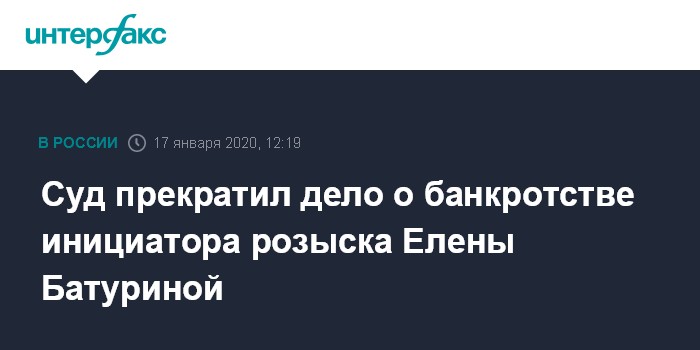 Суд прекратил дело о банкротстве инициатора розыска Елены Батуриной
