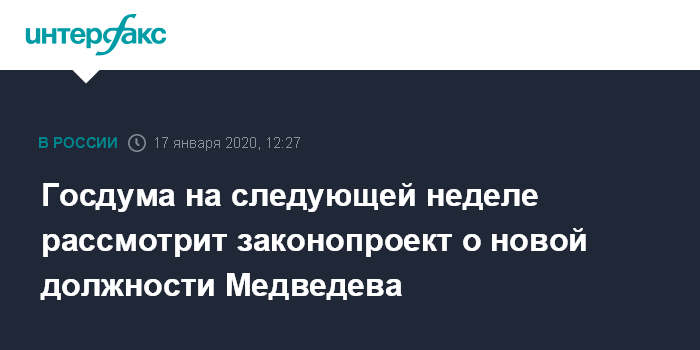 Госдума на следующей неделе рассмотрит законопроект о новой должности Медведева