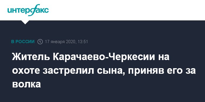 Москва. 17 января. INTERFAX.RU - Житель столицы Карачаево-Черкесии стал фигурантом уголовного дела после убийства сына по неосторожности во время охоты на диких зверей.