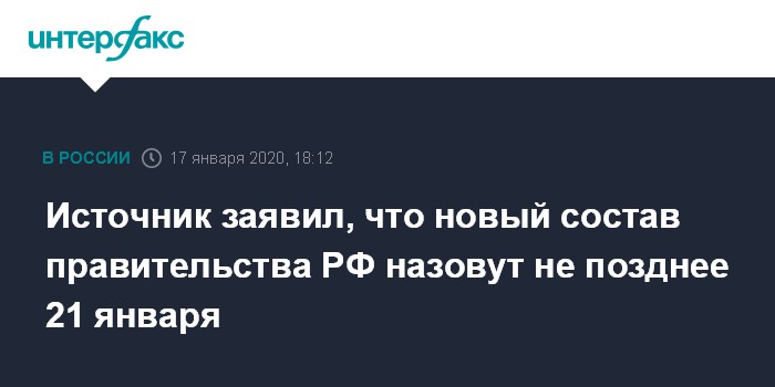 Источник заявил, что новый состав правительства РФ назовут не позднее 21 января