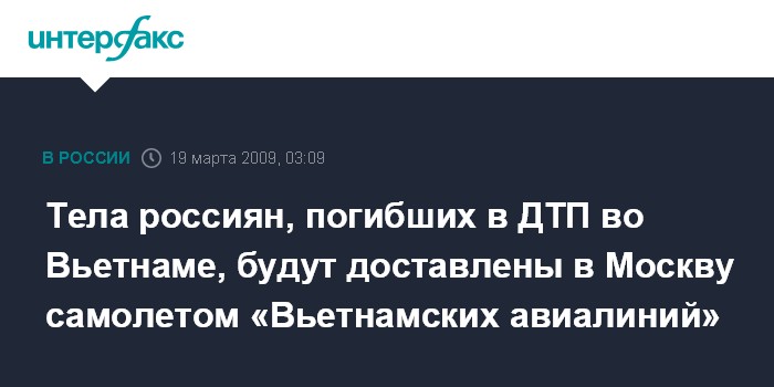 Как сообщили "Интерфаксу" в Российском союзе туриндустрии (РСТ), тела погибших будут отправлены на родину в четверг, 19 марта рейсом авиакомпании "Вьетнамские авиалинии".