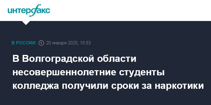 Москва. 20 января. INTERFAX.RU - Семь студентов колледжа из города Волжский получили сроки в колонии по обвинению в попытке сбывать наркотики. Как сообщили в СК Волгоградской области, четверо из них на момент совершения преступления были несовершеннолетними, суд назначил им по четыре года колонии общего режима.
