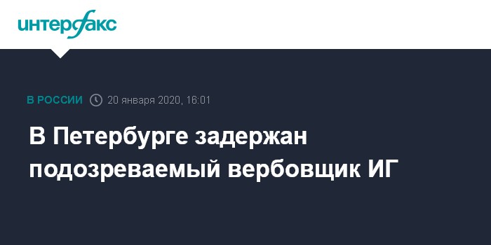Москва. 20 января. INTERFAX.RU - В Петербурге задержан подозреваемый в содействии террористической деятельности запрещенной в РФ организации "Исламское государство", сообщает пресс-служба городского управления СКР.