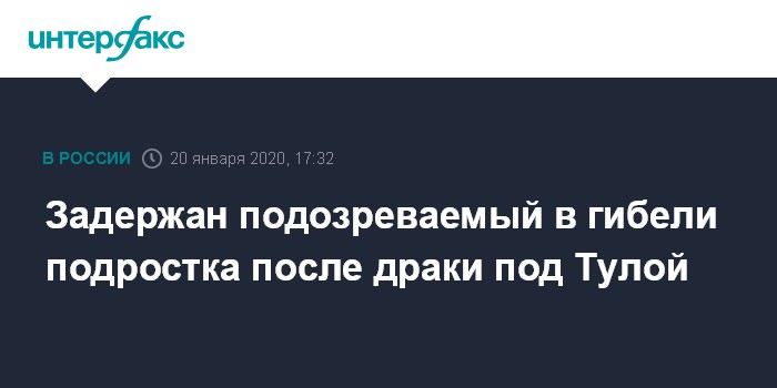 Москва. 20 января. INTERFAX.RU - Найден предполагаемый виновник смерти школьника после драки возле одного из учебных заведений в Узловском районе Тульской области. Об этом сообщила в понедельник пресс-служба следственного управления СКР по региону.