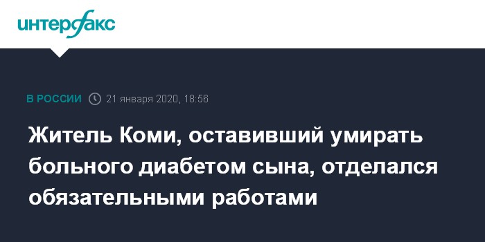 Житель Коми, оставивший умирать больного диабетом сына, отделался обязательными работами