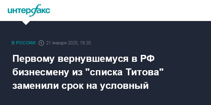 Первому вернувшемуся в РФ бизнесмену из "списка Титова" заменили срок на условный