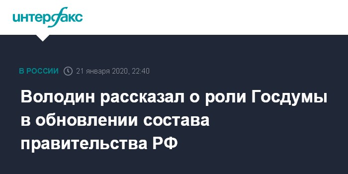 "Можем сказать, что председатель правительства услышал депутатов Госдумы и принял решение, чтобы новые люди занимались вопросами образования, здравоохранения, культуры и социальной сферы", - сказал Володин журналистам во вторник.