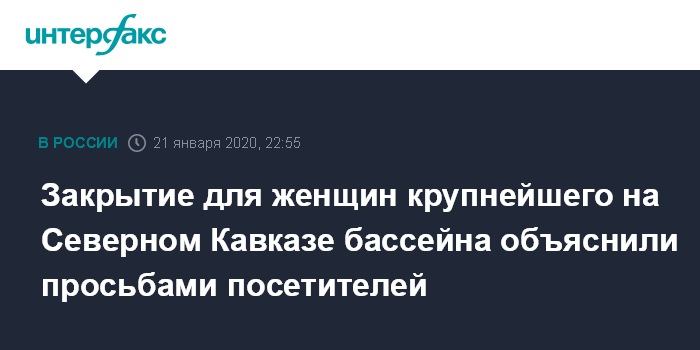 Ранее ряд СМИ опубликовал информацию о том, что самый большой бассейн в Северо-Кавказском федеральном округе (СКФО), расположенный в спорткомплексе "Анжи-Арена", c 21 января закрыт для посещения женщинами.