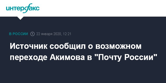 Москва. 22 января. INTERFAX.RU - Бывший вице-премьер Максим Акимов, курировавший вопросы цифровизации и транспорта, может перейти на пост гендиректора "Почты России", сообщил "Интерфаксу" источник, близкий к прежнему составу правительства РФ.