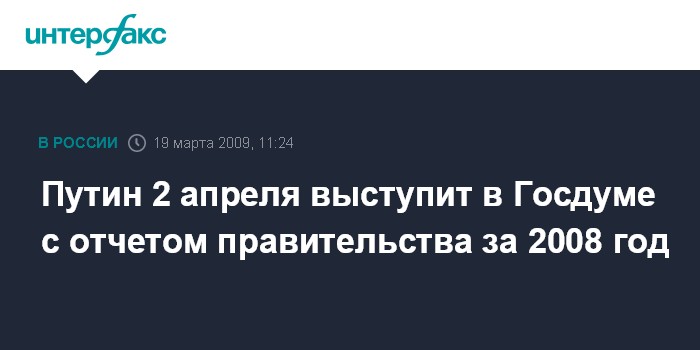 Путин 2 апреля выступит в Госдуме с отчетом правительства за 2008 год