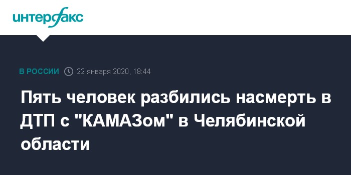 Москва. 22 января. INTERFAX.RU - Пять человек погибли при столкновении легкового автомобиля и "КАМАЗа" на трассе Челябинск-Троицк.