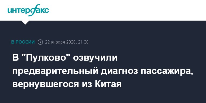Как сообщалось, двое мужчин, граждане Китая и России, были госпитализированы из петербургского аэропорта "Пулково" с подозрением на ОРВИ и высокой температурой. Оба прибыли рейсом из Шанхая, где в настоящее время наблюдается вспышка коронавируса.