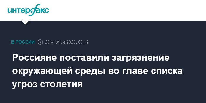 Россияне поставили загрязнение окружающей среды во главе списка угроз столетия