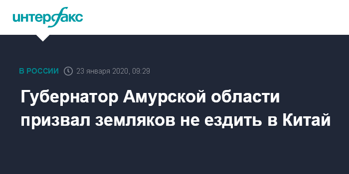 Москва. 23 января. INTERFAX.RU - Губернатор Приамурья Василий Орлов призвал жителей региона временно отказаться от поездок в соседний Китай из-за вспышки нового коронавируса, вызывающего пневмонию. Он написал это в инстаграме.